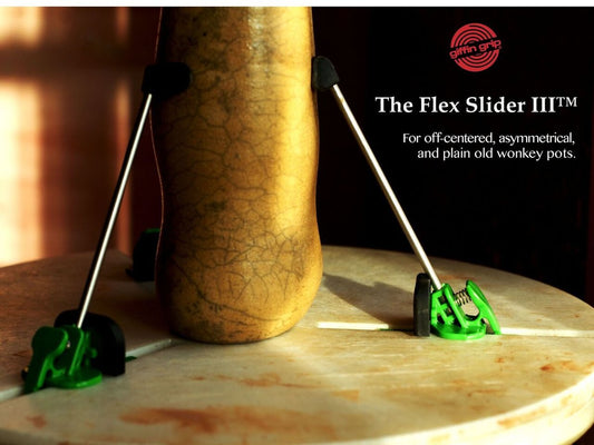 The Giffin Grip Model 10 is the essential re-centering tool for potters. Designed specifically for trimming, it works equally well for waxing the foot or banding the foot with oxides. After a simple one-time adjustment, the Giffin Grip quickly snaps on and off your wheel. It halves the time previously spent in trimming and makes practical trimming shapes that would otherwise have been left untrimmed. Hold little pots, big pots, short pots, tall pots, round sides and straight sides, upside down or right size up!