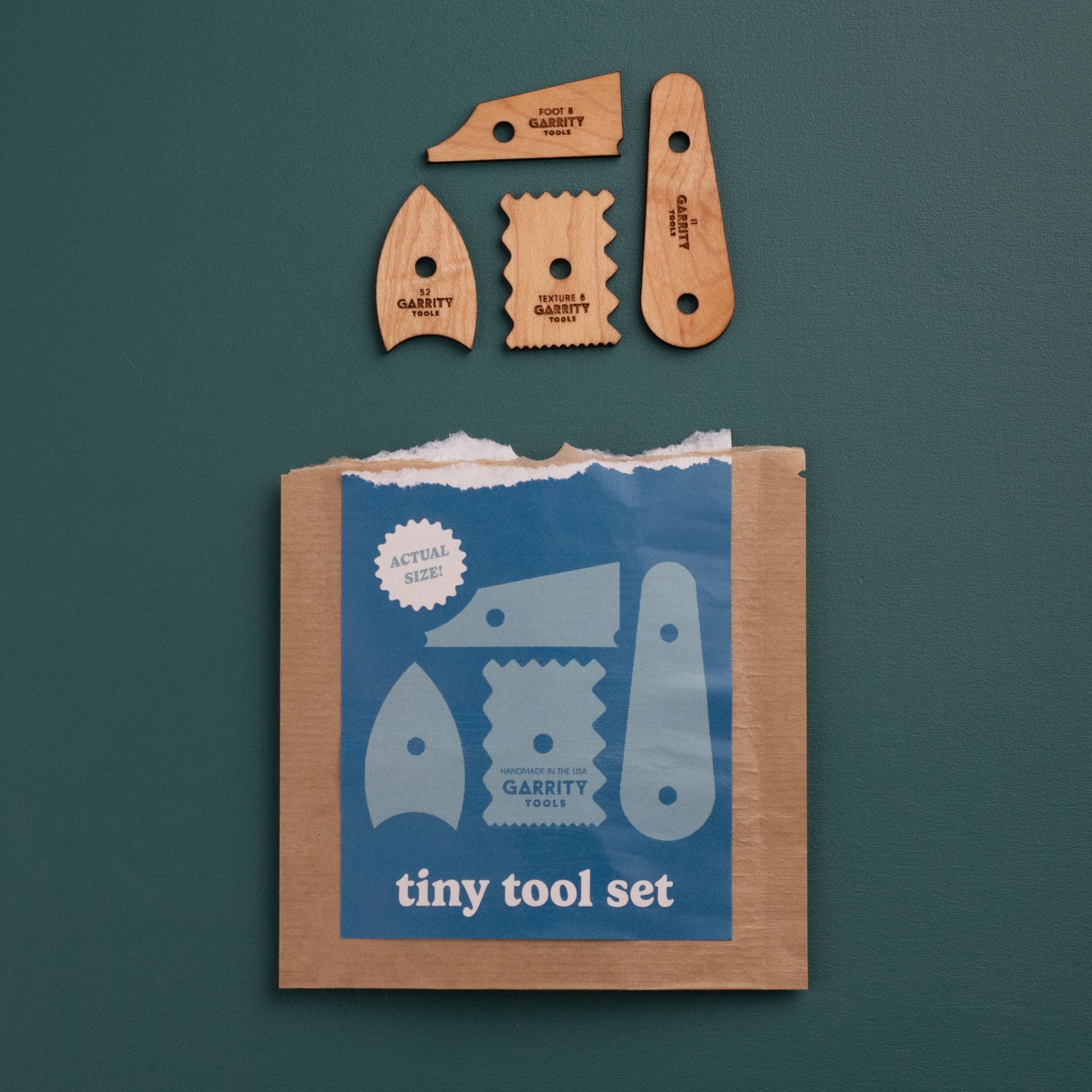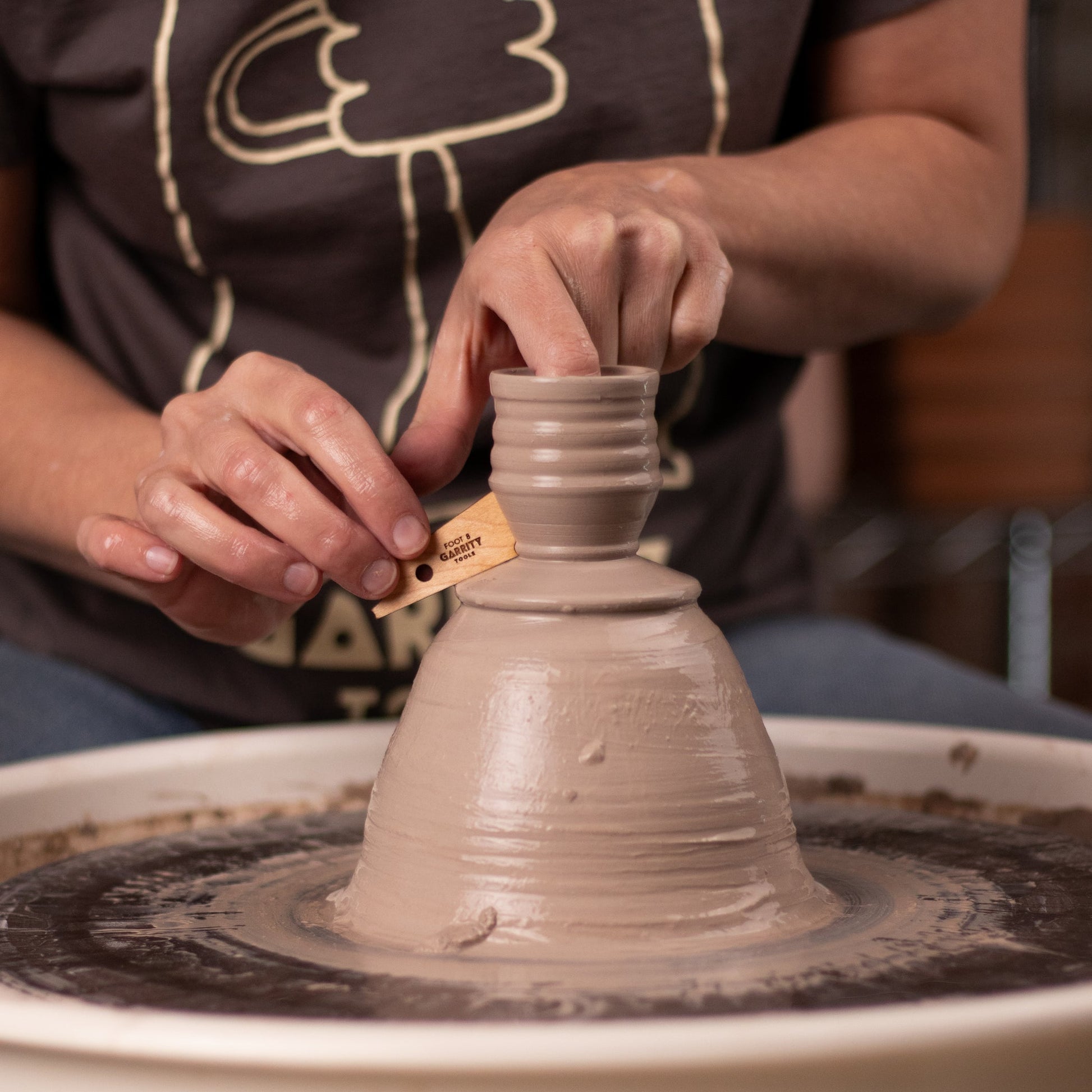 Oh dear…can you handle the cuteness of these tiny Garrity Tools?! This mini tool set includes a small Foot 8, I1, Texture 8, and S2. They come sealed up in an adorable (and recyclable) bag! You can use these tools on a small wheel or when you’re throwing off the hump to make tiny vessels. They come in handy for centering, adding texture, refining form, and straightening up sides.
