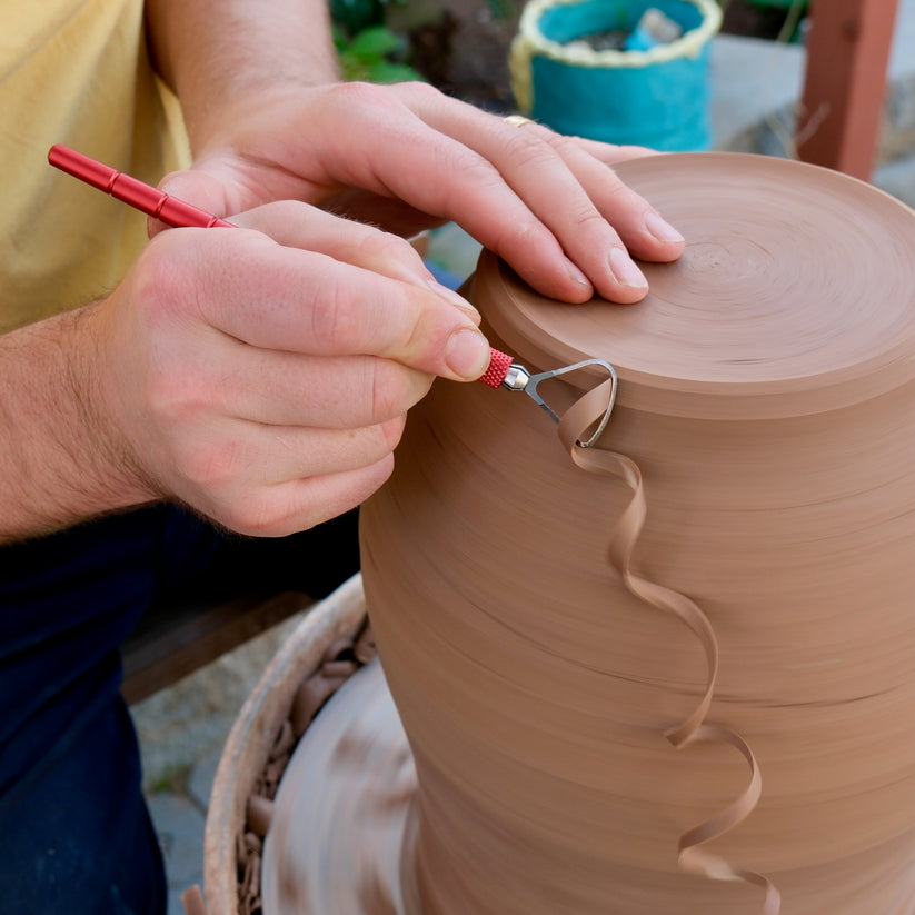 The Dragonfly is equipped with a Classic 7 shaped tungsten carbide trimming blade, designed for longevity and precision. Each blade is sharpened to deliver the best cut right out of the box. Tungsten carbide is an extremely hard material that holds its edge through miles of trimming, even on heavily grogged clay.