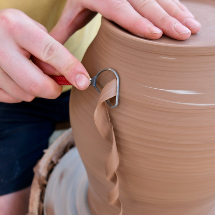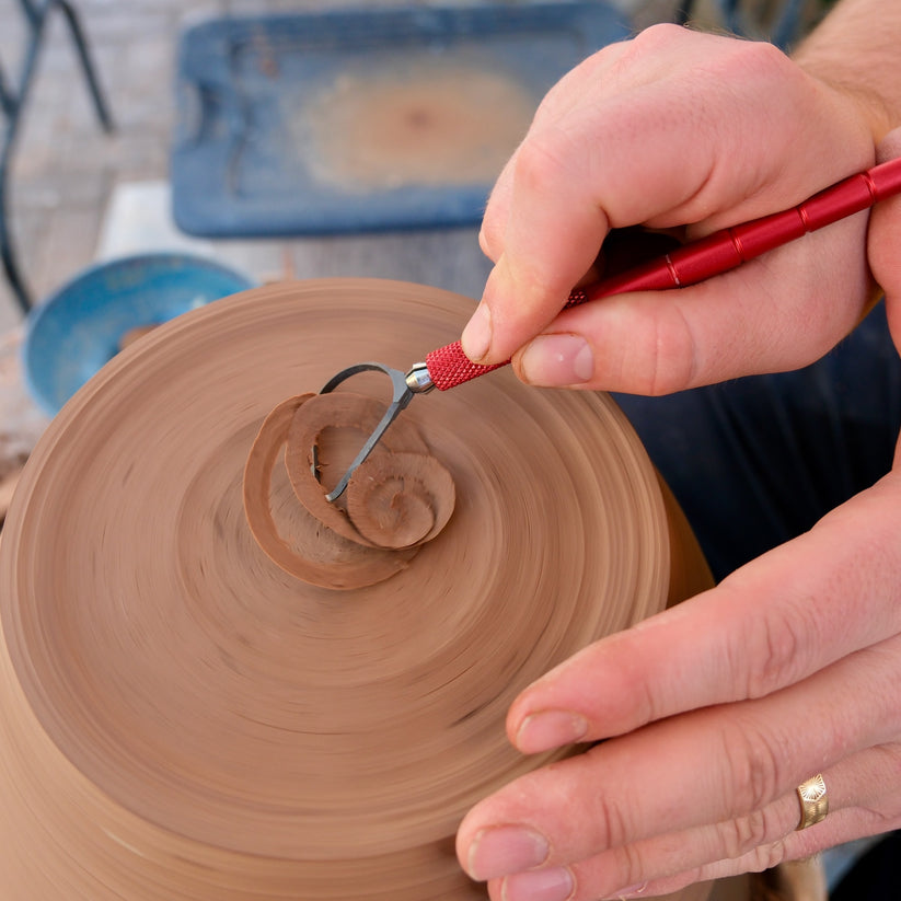 The Dragonfly is equipped with a Classic Pear shaped tungsten carbide trimming blade, designed for longevity and precision. Each blade is sharpened to deliver the best cut right out of the box. Tungsten carbide is an extremely hard material that holds its edge through miles of trimming, even on heavily grogged clay.