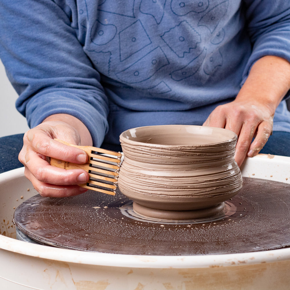 The sturdy handle and consistent teeth of our Texture Comb pottery tool makes it great for scoring or adding texture lines to the surface of any clay project.