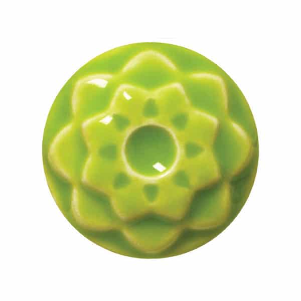 This 100% mixable celadon glaze is a bright, glossy yellow-green that pools and accents textured ware like the ancient glazes it was created to imitate.