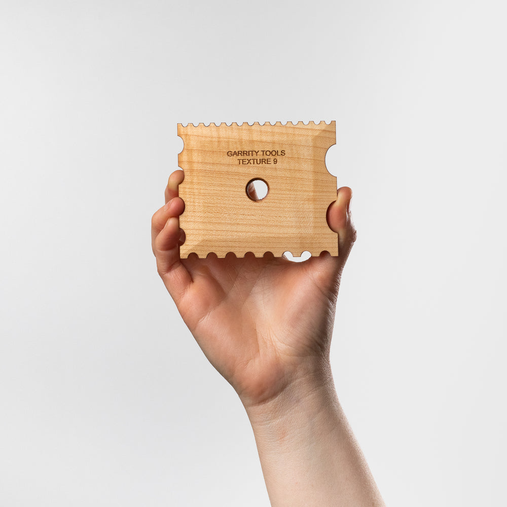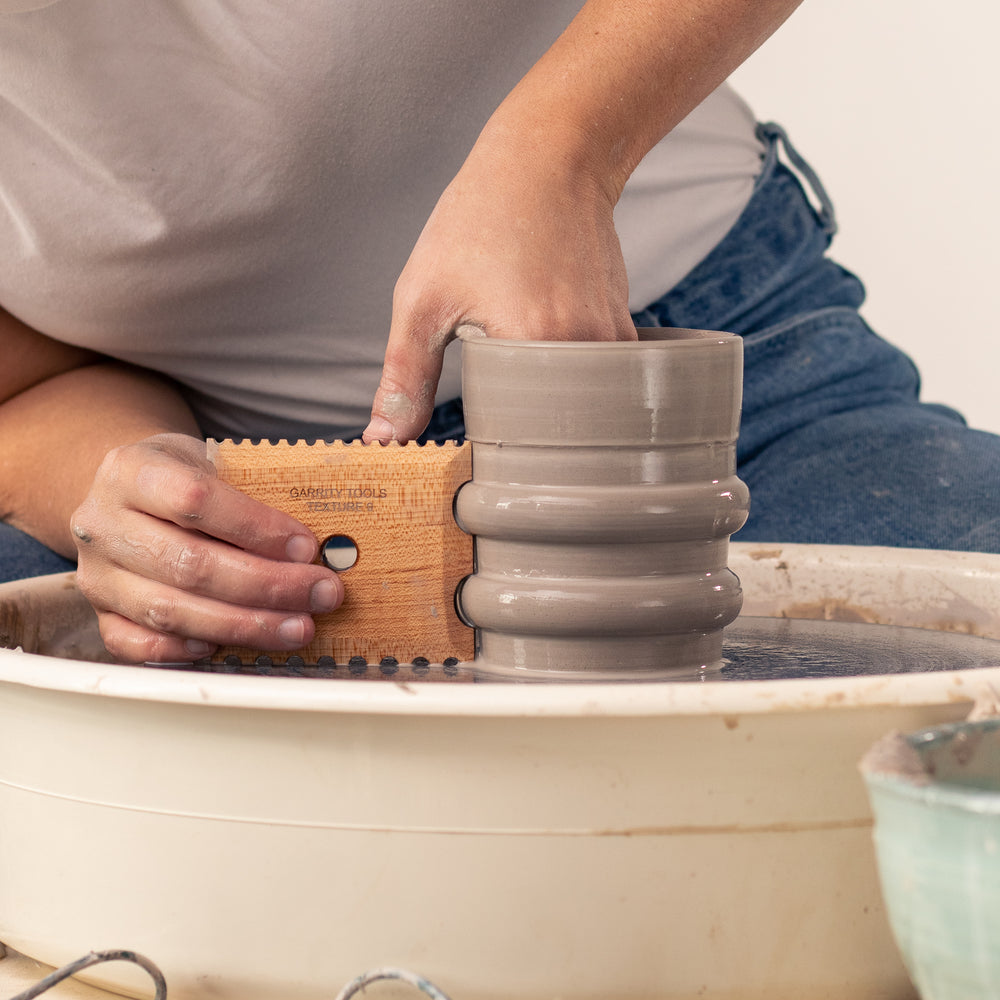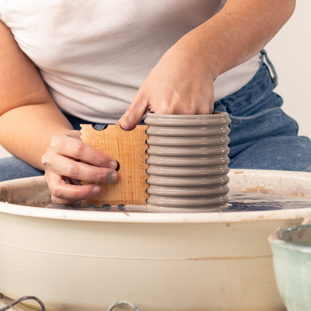 Texture 9 helps you create four different sizes of perfectly rounded ridges on your project's walls. You can throw a clay vessel to perfectly match the height of the sides of this tool or continue using it up a taller form and easily connect the pattern. If this pottery tool looks a little familiar it is a refined version of our Limited Edition Stamp Tool that was so popular!